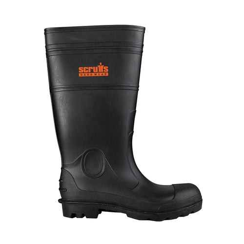 Waterproof safety boot with PVC upper, steel toecap and steel midplate for all-round on-site safety. Slip-resistant with kick-off point at the heel. S5 SRA safety rating.