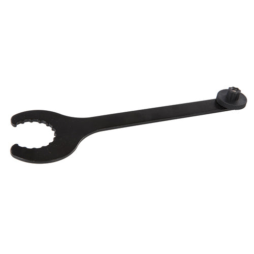 Heat-treated steel wrench specifically for the removal and installation of bottom brackets. Powder-coated for corrosion resistance. Fits externally ringed bottom brackets with 16 splines, such as Shimano Hollowtech II. Includes preload tensioning tool.