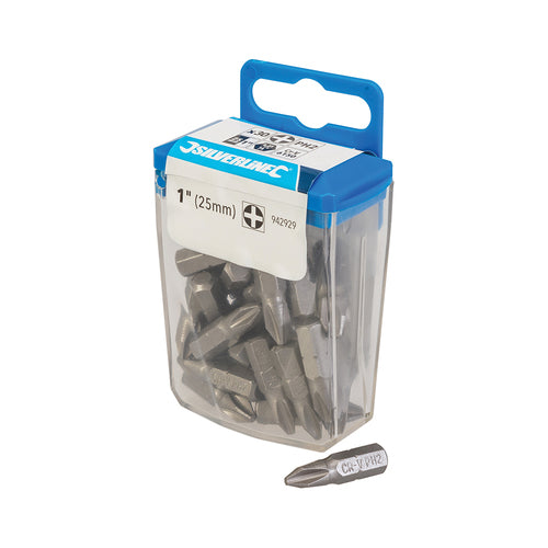 Chrome vanadium 6150 steel bits supplied in a handy storage case. 1/4" hex drive. Length 25mm.