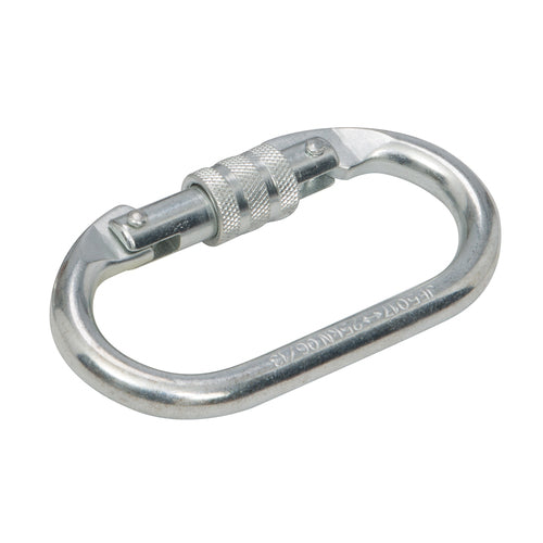 Forged alloy steel karabiner with screw lock gate. Max gate opening 19mm. 100% proof-loaded to 16kN and max breaking strength 25kN. Conforms to EN362. Weight 170g.